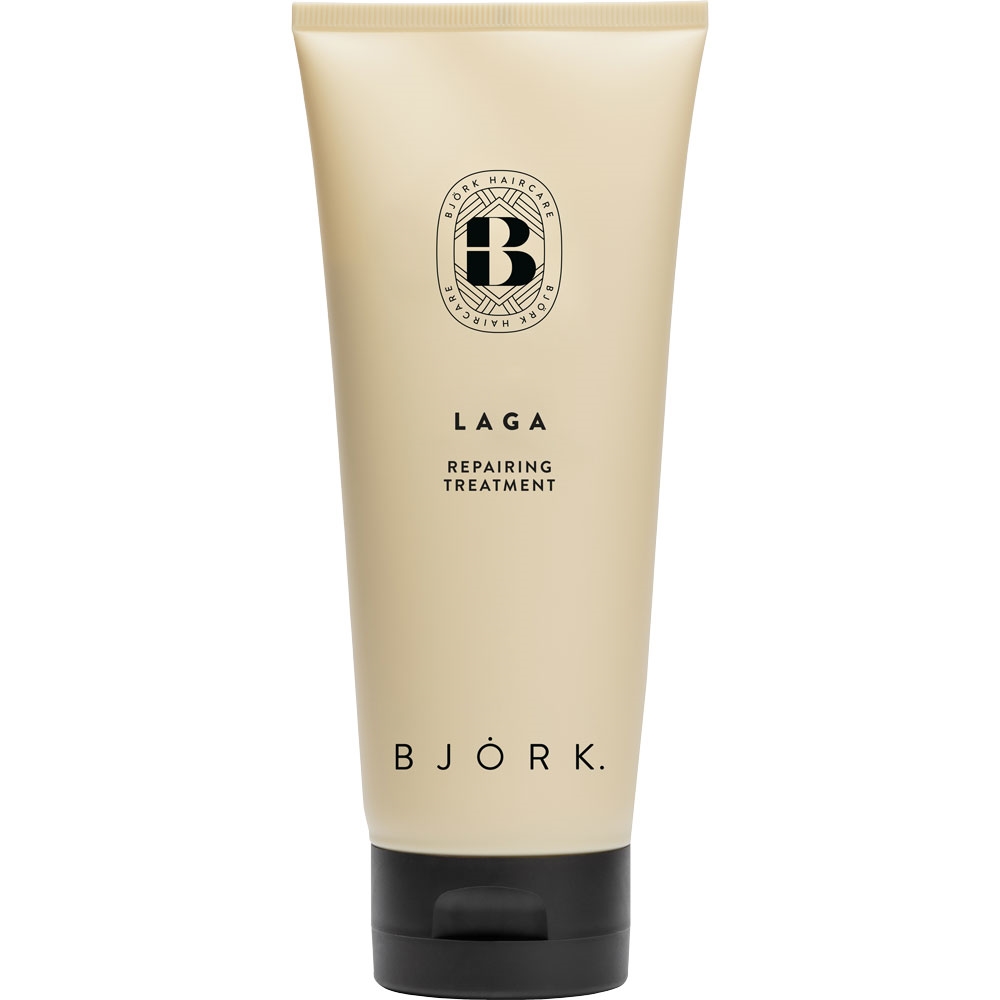 Björk LAGA Repair Treatment er en dybdevirkende kur, der styrker og reparerer skadet eller kemisk behandlet hår. Den forbedrer elasticitet, reducerer brud og efterlader håret blødt og modstandsdygtigt. Ideel som ugentlig dybdepleje.