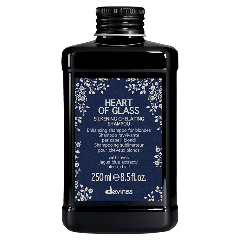 Davines Heart of Glass Silkening Chelating Shampoo er en blødgørende shampoo, der er udviklet specielt til alle nuancer af blond hår – både naturligt og farvebehandlet. Den renser nænsomt men effektivt, opfrisker hårfarven og efterlader håret silkeblødt og medgørligt. Shampooen er rig på naturlige ingredienser og uden silikone.