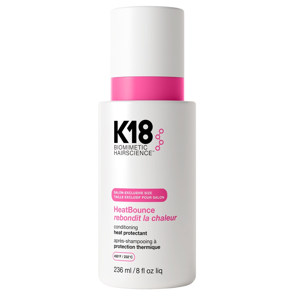 K18 Heat Bounce Conditioning Heat Protectant er en banebrydende varmebeskytter, der styrker og beskytter håret helt ind til kernen. Den avancerede Resilicore™-teknologi skaber en vægtløs barriere mod varmeskader op til 232°C, samtidig med at håret forbliver glansfuldt, blødt og smidigt. Perfekt til alle hårtyper – også farvet hår.