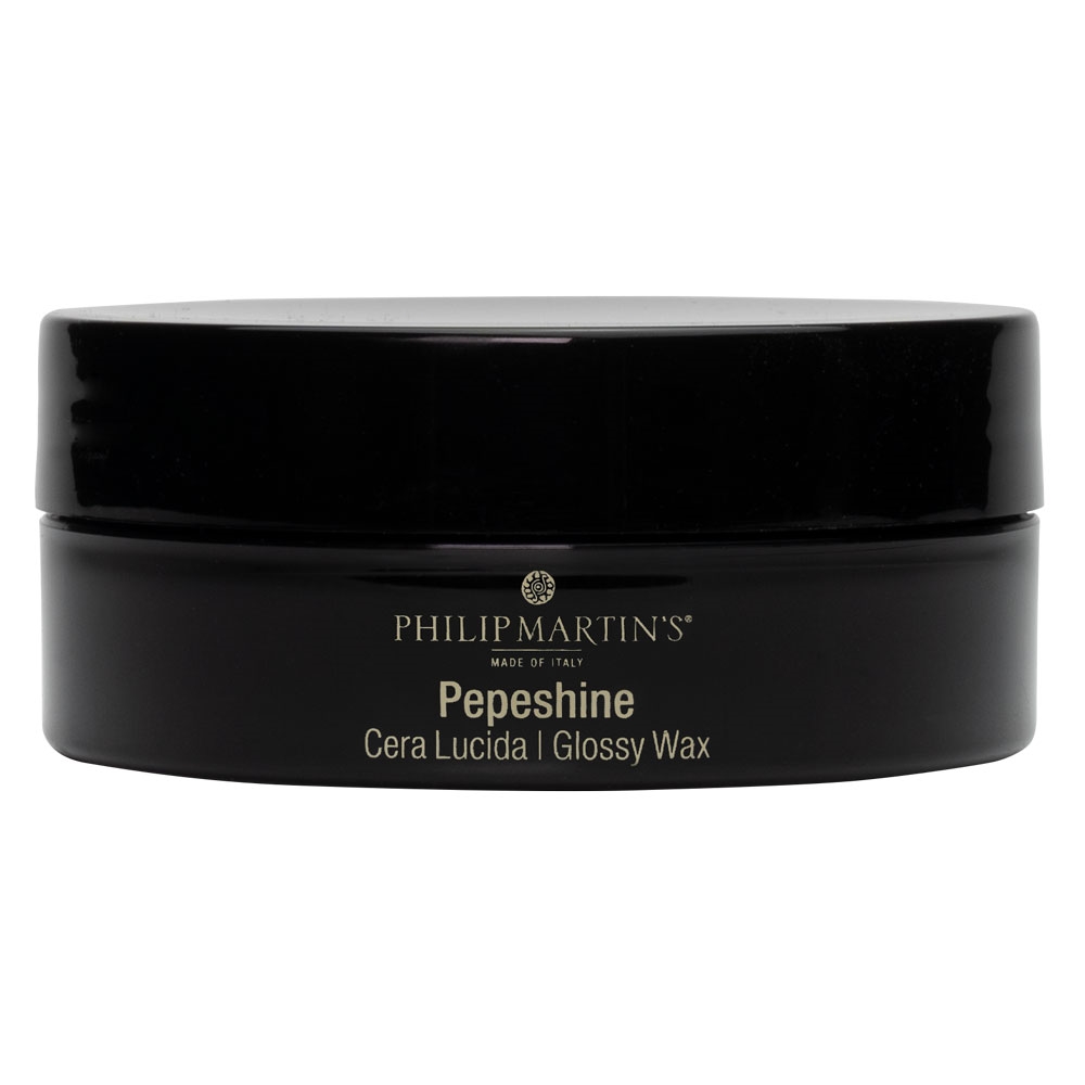 Philip Martins PEPESHINE Glossy Wax er en glansgivende voks, der definerer og former håret uden at efterlade det stift. Den giver en blank finish og fleksibelt hold, ideel til både kort og mellemlangt hår. Voksen er beriget med økologiske ingredienser og er fri for skadelige kemikalier – perfekt til daglig styling.